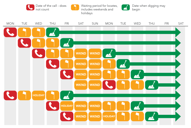 - The period between the submission of the locate request to the notification center and the noted date and time of excavation;